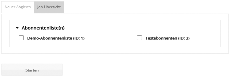 Wählen Sie zunächst die zu überprüfende 'Abonnentenliste' aus. Nach Klick auf 'Starten' wird die Aktion ausgeführt.