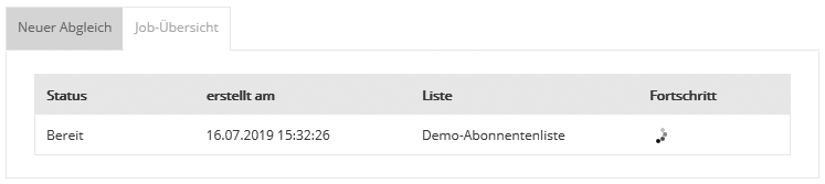 Ist der Status 'fertig' erreicht, wurde der Blacklistabgleich erfolgreich durchgeführt und die Abonnenten aus den gewählten Listen entfernt.