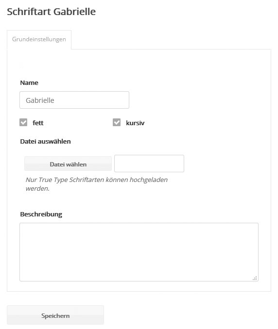 Über 'Schriftarten' gelangen Sie zu allen verfügbaren Schriftarten. Mit der Schaltfläche 'Neue Schriftart hochladen' laden Sie Ihre eigne Schriftart mit 'Durchsuchen' hoch.